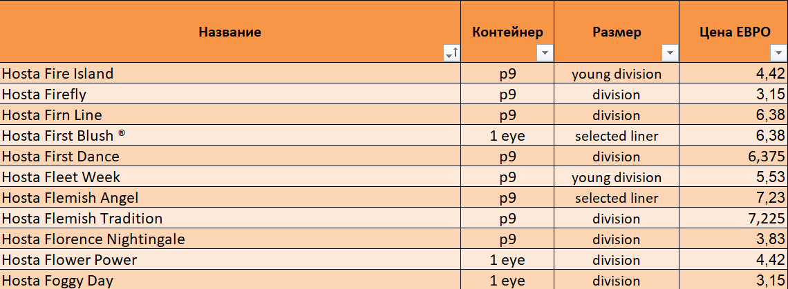Первое, на что важно обратить внимание - порядок цен. Цены тут разумеется в Евро, курс сейчас колеблется вокруг 100 рублей. Именно этот прайс, который я взяла у Флоры Планеты, - самый выгодный из виденных мною для российских покупателей. Я покупала через другую группу, мне оно обошлось немного дороже. Выбрала именно ее из-за того, что там мне виден процесс подтверждения и понятны сроки отправки. Так, например хоста First Dance стоила мне 8,3 Евро: