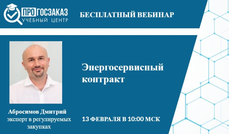 13 февраля 2024 года в 10:00 по МСК состоится бесплатный вебинар на тему «Энергосервисный контракт».