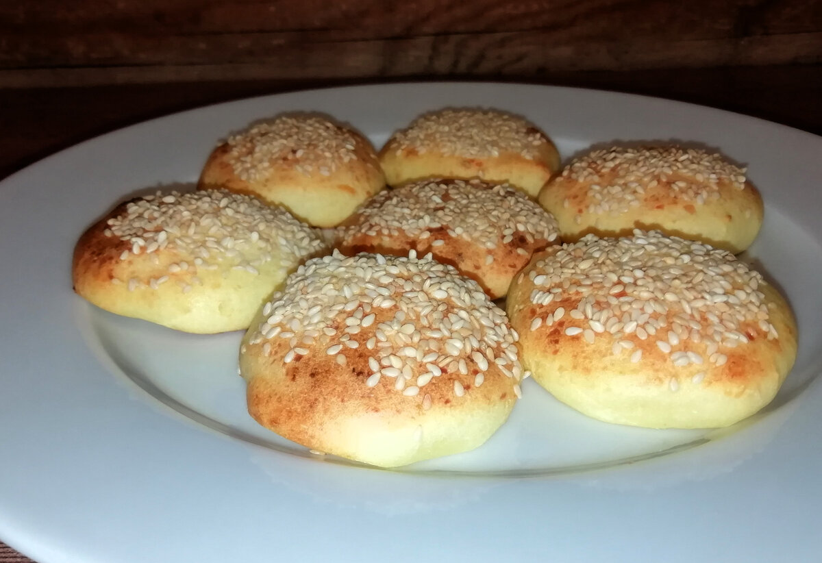 На своем канале я уже публиковала раньше рецепт творожного печенья на рисовой муке. Ссылку на этот простой рецепт вы найдете в конце статьи. На этот раз мне захотелось поэкспериментировать, чтобы получить из творога более воздушную текстуру. Как оказалось, это вполне себе выполнимая задача, если добавить к рисовой муке кукурузный крахмал. Хочу сказать, что это очень удачное сочетание, рисовая мука разрыхляет творог, а кукурузный крахмал дает воздушность и однородную текстуру. Я взяла пачку 5% творога 180 гр, добавила к ней одно яйцо, чайную ложку сахара, две столовые ложки кукурузного крахмала и ложку рисовой муки. Влажными руками сформировала шарики, положила на силиконовый коврик без смазывания, посыпала кунжутом и поставила печься в разогретую духовку на 180 градусов до готовности, то есть румяной корочки. Точное время я не засекала, кажется что-то в районе пятнадцати или двадцати минут. Творожные булочки получились воздушные, мягкие и слегка влажные внутри. Считаю, что этот рецепт