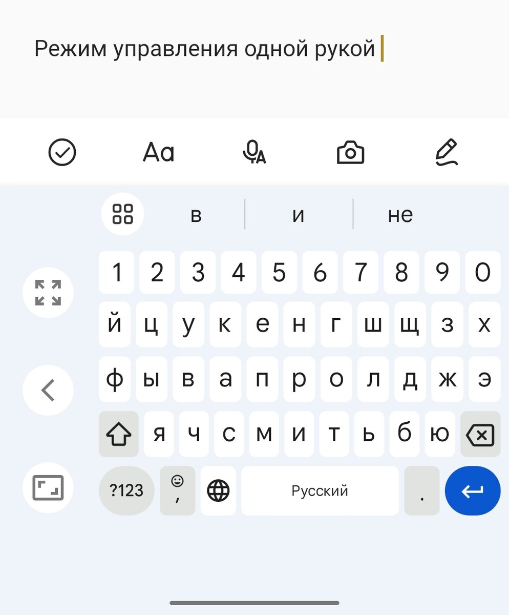 На смартфонах с большим экраном может быть неудобно печатать одной рукой, а задействовать вторую не всегда получается. Например, если человек едет в общественном транспорте и второй рукой держится за поручень. В настройках клавиатуры можно найти настройку, которая смещает клавиатуру в один из краев — так длины пальца хватает для нажатия самых дальних от руки букв.