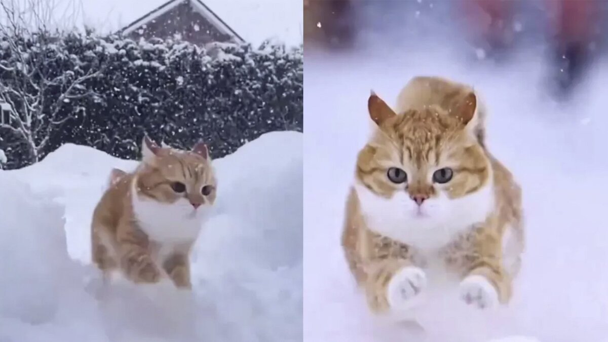 Многие привыкли видеть котов только в теплой обстановке, когда они нежатся на солнце или на мягкой лежанке. А вот увидеть кота зимой среди сугробов — больше похоже на восьмое чудо света! Но все же в этом мире есть один котик, для которого снег, сугробы и зима в целом — его стихия! Судя по активным играм кота, он по-настоящему наслаждается снежной обстановкой вокруг. При этом на фоне белого пейзажа рыжик выглядит очень живописно. Только посмотрите, как он наворачивает круги по двору! ]]>