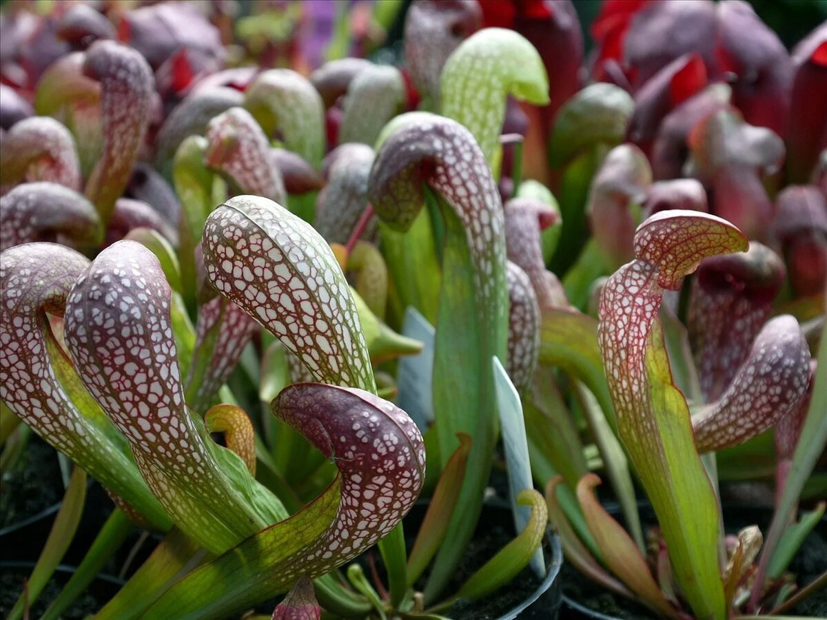 Дарлингтония - род, относящийся к семейству Саррацениевые и представленный всего одним видом - Дарлингтонией калифорнийской (Darlingtonia californica), обитающей в одноимённом штате США. Растение интересно, в первую очередь, своим внешним видом. Листья-кувшины имеют эффектные "капюшоны" в верхней части, делающие это растение похожим на кобру в стойке. В продолжение "змеиной" тематики стоит отметить, что зачастую дарлингтония растёт на змеевидных почвах - типе почв, образованных выветрившимися ультраосновными породами, такими как перидотит. У этого растения очень мощная корневая система, более развитая, чем у саррацений и гелиамфор. Её особенность заключается в том, что она крайне негативно реагирует даже на малейший нагрев. У корней дарлингтонии наблюдается очень интересный феномен, причины и механизм которого пока не до конца ясен ученым, - их рост в почве идёт по направлению к холодным подземным источникам. То есть корни ищут любые способы охладиться. Селекционерами были выведены со