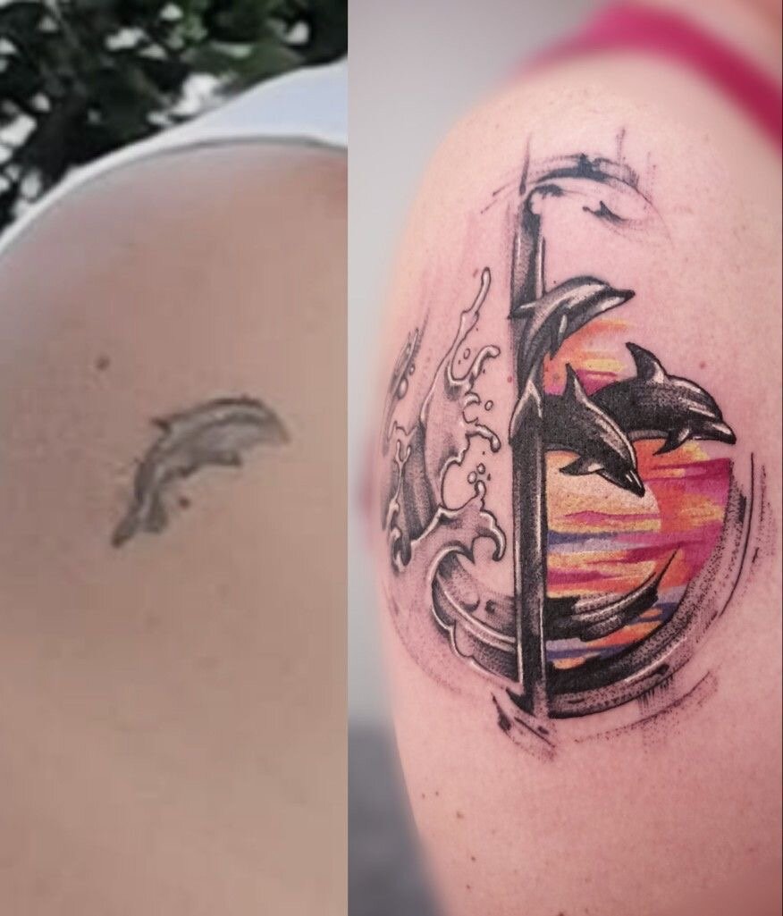 Если вы решили сделать татуировку, вам нужно сразу быть готовым к тому, что в некоторых случаях придётся делать её коррекцию. Это помогает доработать свежую, улучшить или изменить уже существующую тату. Коррекция понадобится, если: Из-за реакции кожи в процессе нанесения даже опытному мастеру иногда сложно заметить мельчайшие дефекты в рисунке. После снятия отечности некоторые участки могут казаться более светлыми. Со временем даже качественно выполненные работы неизбежно немного тускнеют, а контуры расплываются. Особенно это касается цветных татуировок. Это связано как с постоянным обновлением кожи и воздействием солнечных лучей, так и местом нанесения рисунка (на некоторых участках кожа стирается и обновляется гораздо быстрее). Коррекция – это естественный процесс. Она может потребоваться как для доработки новой татуировки, так и в качестве ухода за старым и потускневшим рисунком.