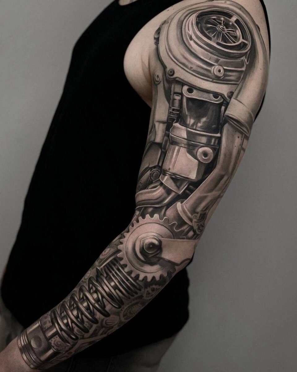 Сегодня погружаемся в мир одного из самых молодых стилей татуировки – Биомеханики. Направление зародилось в 80-е годы ХХ века среди тату-мастеров, вдохновленных симбиозом человеческого тела и различных механизмов. – Немаловажное влияние на него оказал выход таких фильмов как "Терминатор" и "Чужой". По большому счету это олицетворение глобальной кибернизации человечества. Характерные черты биомеханики – сочетание органических форм и механических элементов, где кожа может переходить в металл, а технологии становятся частью человеческого тела. – Стиль исповедует принцип "рваной кожи", которая обнажает скрытые под ней механизмы. Биомеханика привлекает внимание своей футуристической эстетикой, деталями, реалистичностью и прорисовкой теней. Изначально эскизы включали черные, серые и металлические оттенки. Сегодня же больше приветствуются яркие цвета. Тату в этом стиле может выполнена на любых частях тела. И каждый участок открывает новый простор для фантазии. Чаще всего биомеханику