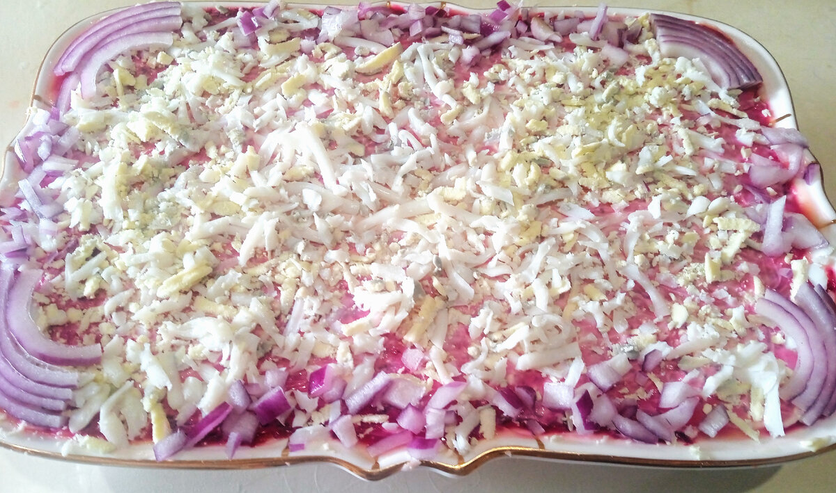 Сегодня я поделюсь с вами рецептом невероятно вкусного салата. Свежая свекла, сочная куриная грудка, ароматный маринованный лук, нежные яйца и картошка – все эти ингредиенты встречаются в одном блюде. Готовы узнать секрет этого легкого и насыщенного вкуса? Тогда вперед! Ингредиенты: 3 вареные картофелины 500гр куриного филе или говядины 150гр моркови по - корейски 2 небольшие луковицы (лучше красные) 2ст ложки яблочного уксуса 4 вареных яиц 2 вареные или запеченные свеклы (небольшие) соль по вкусу майонез Приготовление: Картофель и свеклу очистить и отдельно натереть на крупной терке. Куриное филе (говядину) нарезать соломкой. Лук очистить, нарезать полукольцами и замариновать. Для этого залить лук 2ст ложками воды и 2ст ложками уксуса, перемешать, оставить на 30 минут. Затем откинуть на дуршлаг, чтобы стекла вся жидкость. Яйца нарезать соломкой. Все подготовленные ингредиенты выкладывать слоями в салатник, присаливая и промазывая каждый слой майонезом. Картофель - морковь по- корейски