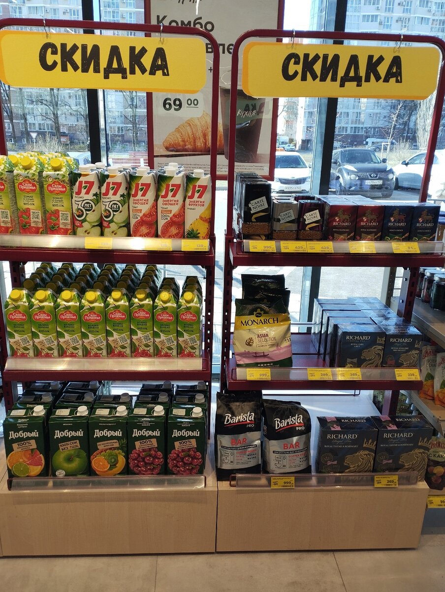 Буквально несколько дней назад около нашего дома проходило открытие нового "Магнита", который едва ли чем-то отличается от остальных, но зато в день, когда его презентовали, магазин выглядел шикарно. Чистенький, все убрано и расставлено по местам, все ценники на виду, да еще и подарки покупателям раздавали при покупках на определенную сумму. И все это, конечно, выглядело ярко-красиво, правда спустя всего несколько дней визит оставил уже не такие положительные впечатления. Полупустые холодильники еще ладно, но по всему магазину было большое количество коробок, из-за которых просто неудобно ходить. Все эти организационные моменты присущи почти любому супермаркету, поэтому надежда была хотя бы на хорошие скидки. Кстати, давайте о них и поговорим, я покажу что удалось найти 30.01 и какие продукты продают по желтому ценнику: Всегда обращаю внимание на то, какими акциями магазин нас встречает, ибо зачастую здесь или самые выгодные предложения, или те, что в приоритете у самого супермаркета (