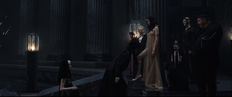 Снигирь – абсолютная королева декаданса, одинаково органичная с сигаретой и молотком в руке. Ближе к финалу её героиня тоже раздваивается: отчаявшаяся любовница драматурга, заточённого в психиатрическую больницу, решается на самоубийство, добавляет яд в красное вино и погружается в чтение романа. Глоток за глотком, строка за строкой – Маргарита медленно умирает и правит балом Сатаны одновременно. Этот эпизод с параллельным действием, пожалуй, самый пронзительный и ошеломляющий. От красоты кадра хочется зарыдать.