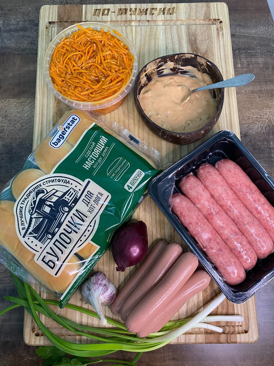Домашний Хот-Дог с Купатами и Сосисками, корейской морковью и оригинальным соусом.