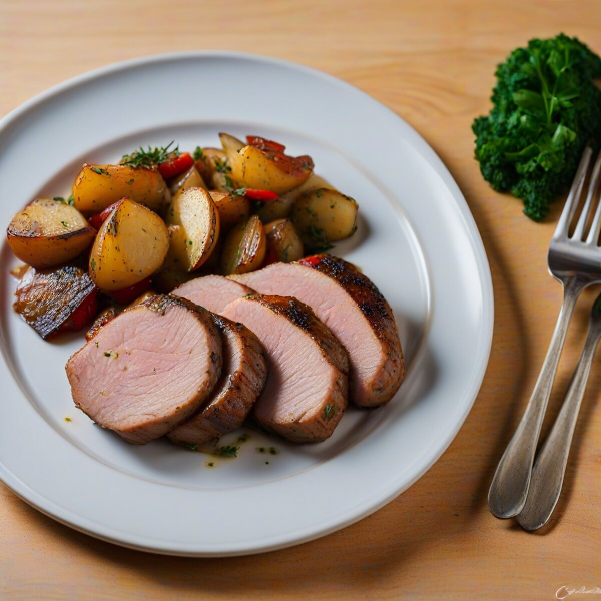 Tender pork tenderloin seasoned with classic French herbs, served with roasted potatoes and ratatouille, makes for a delicious and healthy dinner option. INGREDIENTS: 4 Servings 14 ingredients. DIRECTIONS: 7 steps. Ready in about 70 minutes. 1. Preheat the oven to 400°F (200°C). 2. In a small bowl, mix together 1 tbsp olive oil, garlic, herbes de Provence, paprika, salt, and pepper. Rub the pork tenderloins with the mixture and let them sit while you prepare the vegetables. 3. Place the halved potatoes on a baking sheet and drizzle with 1 tbsp olive oil. Season with salt and pepper and toss to coat. Roast in the oven for 30-35 minutes, or until tender and golden. 4. While the potatoes are roasting, prepare the ratatouille. In a large skillet, heat 1 tbsp olive oil over medium heat. Add the onion and cook until softened. Add the bell pepper, zucchini, yellow squash, and eggplant. Cook until the vegetables are tender. 5. Stir in the diced tomatoes and balsamic vinegar. Simmer for 10-15 m