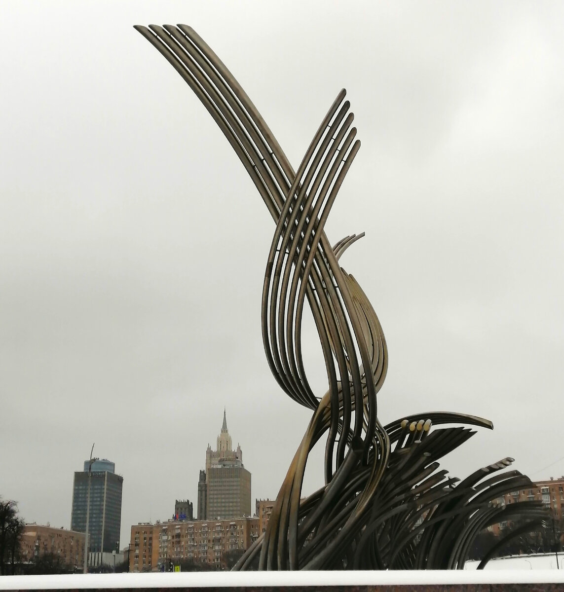 Они граничат друг с другом, эти две площади. То есть, в источниках так и пишут: «площадь Киевского вокзала ограничена площадью Европы» и, соответственно, наоборот. Только вокзальная площадь существовала с давних пор, лишь меняя названия – то она была Брянского вокзала, то Киевская площадь, а Европа завелась у нас относительно недавно. Как раз с тех пор, как начали целоваться в десна, в 2001 году. И для того, чтобы обзавестись такой шикарной европейской площадью, от вокзальной откусили кусочек, а потом сказали, что так и было. Зато теперь очень удобно добираться – чемодан, вокзал, Европа. Площадь задумывалась как помпезная – ну еще бы, ведь сама столица Евросоюза, Брюссель, презентовала Москве скульптуру своего абстрактного скульптора Оливье Стребеля. Да не простую, а стальную, на века. Как нестареющая дружба России и Европы, как тогда представлялась. Символ, в общем и целом, единства. И ведь вот что интересно: экскурсоводы до сих хвастливо заявляют, что творение бельгийского гения – с