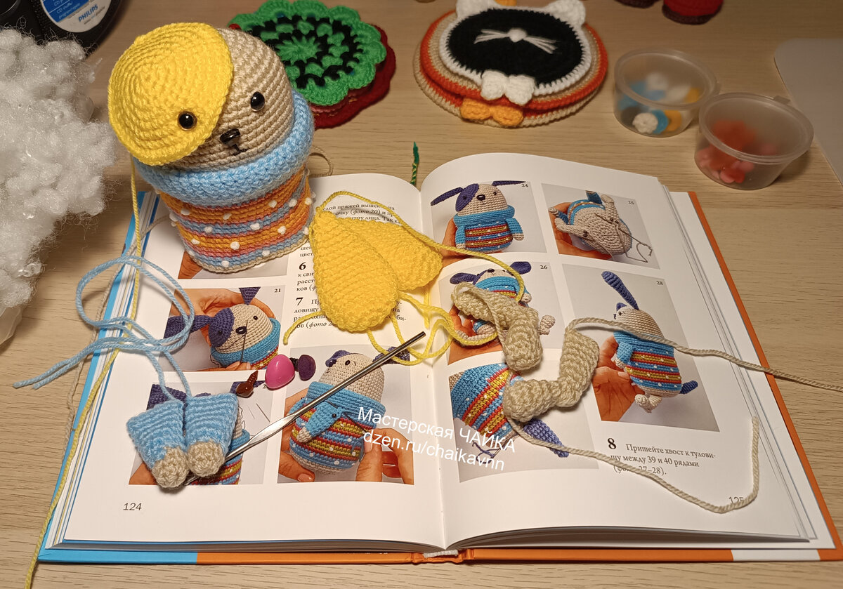 Амигуруми. Вяжем крючком. Обзор книги, которая порадует любую мастерицу, влюблённую в технику вязания амигуруми. Хочу поделиться с вами радостью, а именно, подарили мне замечательную книгу "Лось Вова и другие яркие личности". Это мои девочки из Соседского Центра расстарались и сделали мне такой шикарный подарок!!! Девчонки, СПАСИБО!!! Само название, по моему, говорит само за себя!!! Это, действительно, десять ярких личностей. Их придумала и связала Наташа Тищенко. Связала и составила описание работы ко всем десяти чудесным своим ярким личностям: Все игрушки, неповторимые авторские образы!!! Не удержалась и, задвинув все дела подальше, села и связала пёсика. Очень он мне понравился. Описание работы подробное и чёткое. Связала на одном дыхании!!! Похвалилась на своей странице VK и мой первый Лаки уехал к своему семимесячному хозяину. Просмотрев описание всех игрушек в данной книге, я убеждена, что составляла её молодая мамочка. Все игрушки, очень милые и удобные в "тисканье" детскими ру