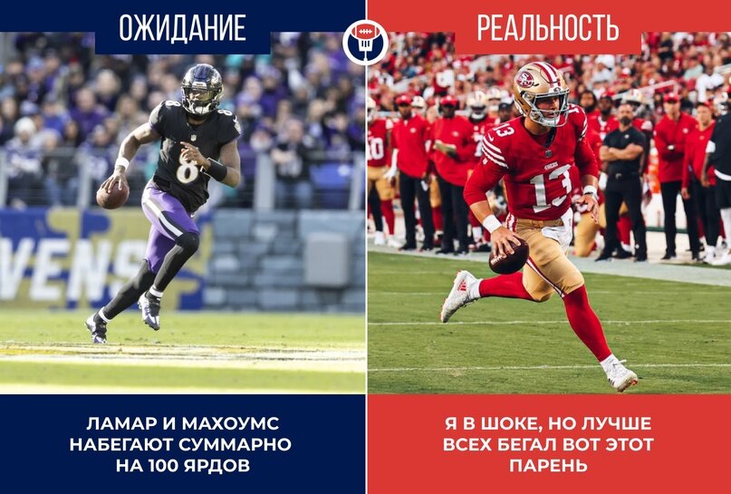 А вот Парди буквально открыл в себе талант скрэмблера в самый ответственный момент. 5 рывков на суммарных 48 ярдов с набором, если не ошибаюсь, 3 первых попыток — это явный нежданчик для защиты «Детройта». 9.6 ярда за попытку — лучший результат среди всех четверых квотербеков этого раунда. Вроде полтора сезона уже смотрим на Брока, а он продолжает удивлять.