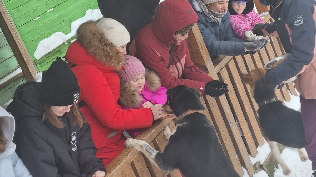 И вот мы знакомились сначала с девчатами - невероятно красивыми, в отличной физической форме, позитивными собаками. Затем побывали в домиках мальчишек и там могли кормить и гладить. А после нас познакомили с пушистыми, которых хотелось тискать уже только из-за толщины