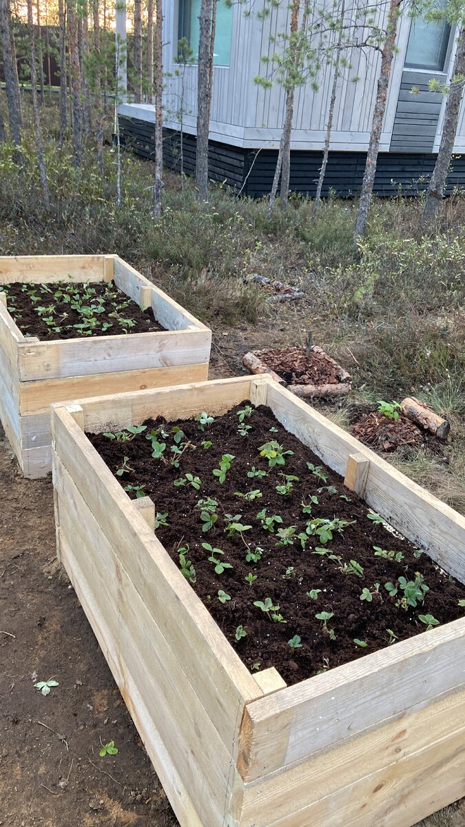 И сначала мы посадили их в высокие грядки, которые даже специально сделали. На фото ранняя весна, и эти грядки пока не окрашенные.