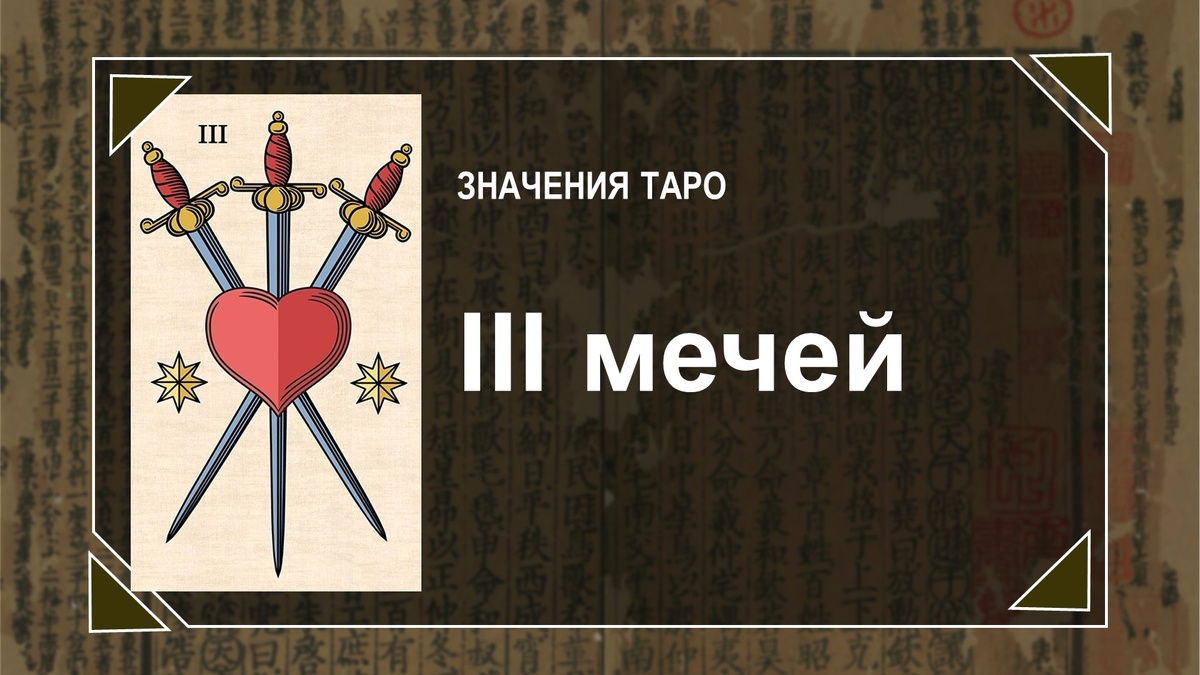 Когда тасуешь колоду, всегда знаешь, какую карту больше всего боишься вытянуть. Несомненно, в 90% раскладов одной из таких карт остаётся Тройка мечей. Мы боимся её, потому что знаем: эта карта не проходит в жизни безболезненно. Один вид пронзённого сердца отзывается в теле фантомными болями. Но так ли страшна Тройка мечей на самом деле? Неужели она всегда означает боль, разочарование и расставание с любимыми людьми? Этот миф я сегодня постараюсь развенчать, ведь не существует плохих карт – бывают только неумелые игроки. Тройка мечей – карта болезненных решений. Компромисс Двойки невозможно удерживать вечно. Рано или поздно число несоответствий между желаемым и действительным положением дел превышает критическую массу, и тогда человек вынужден признать – его убеждения ошибочны. Когда стены воздушного замка не сумеют сдержать удар, иллюзии развенчаются. Столкновение с реальностью может быть мучительно. Оно не только лишает надежды, но выявляет слабость человека, его склонность к само