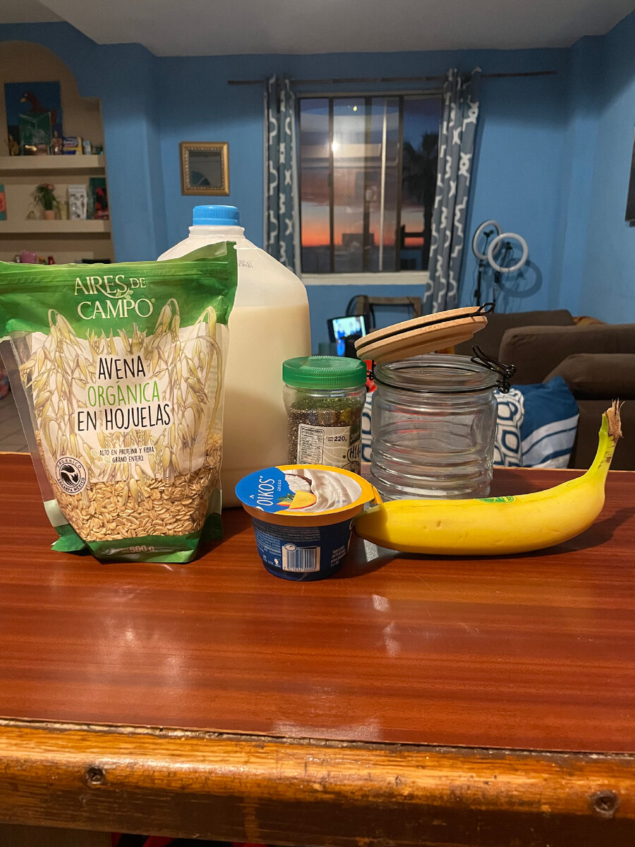 В мире трендовых завтраков новая звезда — ленивая овсянка! Забудьте о сложных приготовлениях — это блюдо не только вкусное, но и быстрое. Идеально подходит для тех у кого нет много времени готовить завтраки с утра . Для ленивой овсянки вам понадобятся следующие ингредиенты: Овсянка - 2-3 ложки Молоко или растительное молоко Фрукты (например, ягоды, бананы) - как начинка. В моем случае это банан Семена Чиа - 2-3 ложки Греческий йогурт - 1 упаковка Эти простые ингредиенты помогут вам быстро приготовить вкусный и полезный завтрак. Помните, что вы всегда можете экспериментировать с ингредиентами в соответствии со своим вкусом и предпочтениями. Выкладываем на дно банки овсянку . Количество овсянки варьируйте под вместимость вашей банки . У меня она довольно большая . В моем случае я кладу 3 ложки . Далее идут семена чиа . У меня три столовые ложки Далее выкладываем половинку йогурта Добавляем молока . Обратите внимание , не нужно добавлять слишком много (как у меня получилось в этот ра