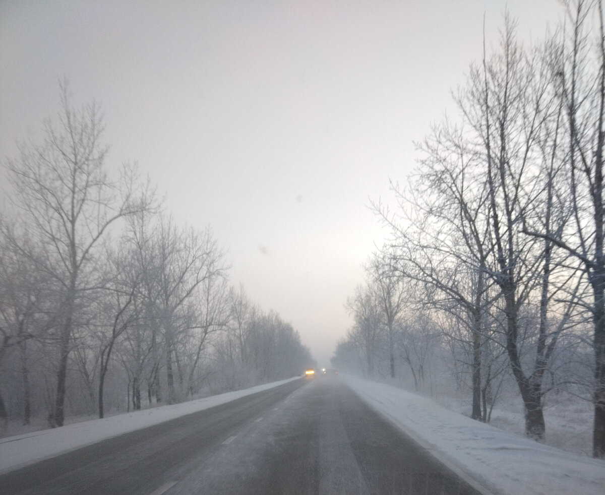Вот и последний день января наступил. Где-то уже оттепель, бегут ручьи, а у нас зима правильная. С утра -37,8. Градусник электронный, не врет, определяет до десятых. Но Савку уже подняли, так что едем в школу. Из дома выходишь и дыхание перехватывает. А с ГРЭСа сеет снеговая пороша. Видимо так же работает снеговая пушка. Все в туманной дымке.