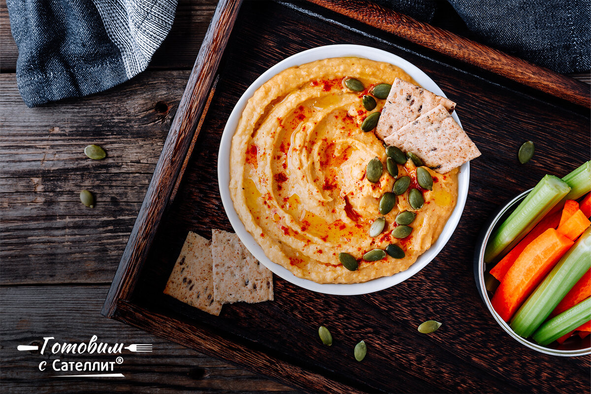 Прекрасная холодная закуска, которая украсить любой стол и подарит массу наслаждения. А еще у хумуса низкий гликемический индекс и он богат клетчаткой и магнием. Ингредиенты: Приготовление: Так же его можно украсить тыквенными семечками или кедровыми орешками. Подавайте блюдо с цельнозерновыми хлебцами и овощами, нарезанными соломкой. Если вы не нашли тахини, то замените его кунжутными семечками. 2 столовые ложки измельчите в кофемолке или блендере. Приятного аппетита!