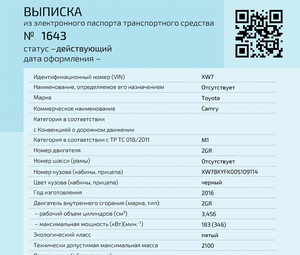 В ЭПТС собраны идентификационные и технические данные о автомобиле.
