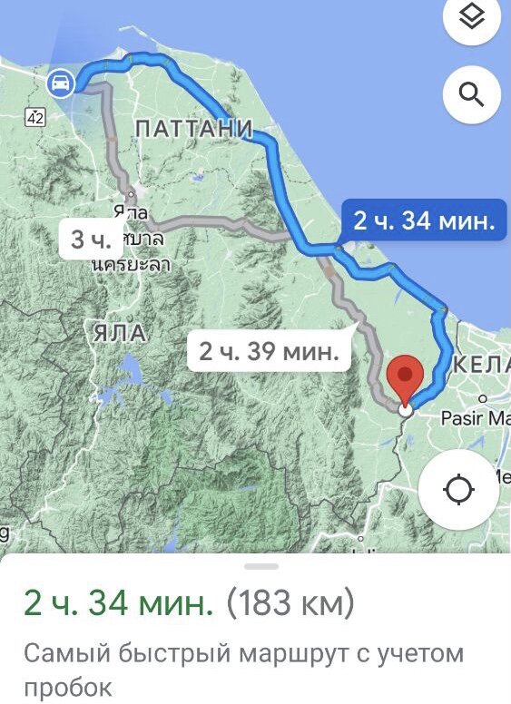 Наша следующая цель Кота-Бару. Нужно доехать до границы с Малайзией и реку перейти, граница по реке. Южный Тайланд, провинции Петтани и Наратхиват — этакая тайская Чечня. Население в подавляющем большинстве этинические малайцы. Здесь есть борьба за отделение от Тайланда и по дороге к границе это очень чувствуется. Часто встречаются блокпосты, укреплённые песком, обнесенные колючей проволокой, блиндажи с бойницами на уровне колес и портреты повстанцев в розыске. Нам они на все одно лицо, мне такой же в соседнем кресле в маршрутке сидит. Многие до сих пор носят маски после ковид. Шляпа, маска, темные очки - поди опознай повстанца. В активной фазе война тут была до 17-го года. На стартовом автовокзале в городе Сонгхла нас не фатально, но развели. Что удивительно, мы все-таки не новички. Такси высадило нас на углу автовокзала. Сразу же набежали таксисты и показали кассу, чтобы купить билет на автобус в Сунгай Колок. Мы заплатили по 380 бат с носа, получили розовую бумажку со штампом и му