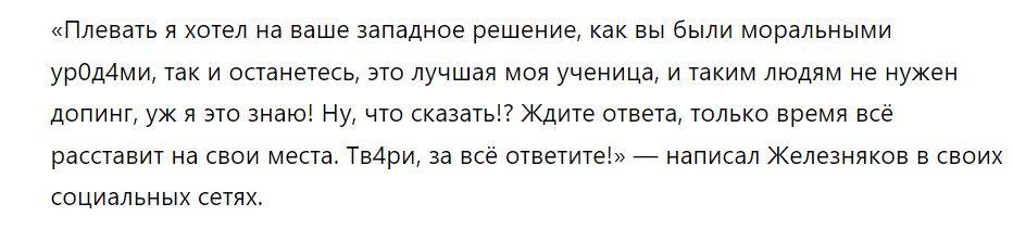 Собственно тут особо и добавить то нечего. Разве что я всё жду и надеюсь, когда же наших чинуш от спорта отучат общаться с извращенцами.