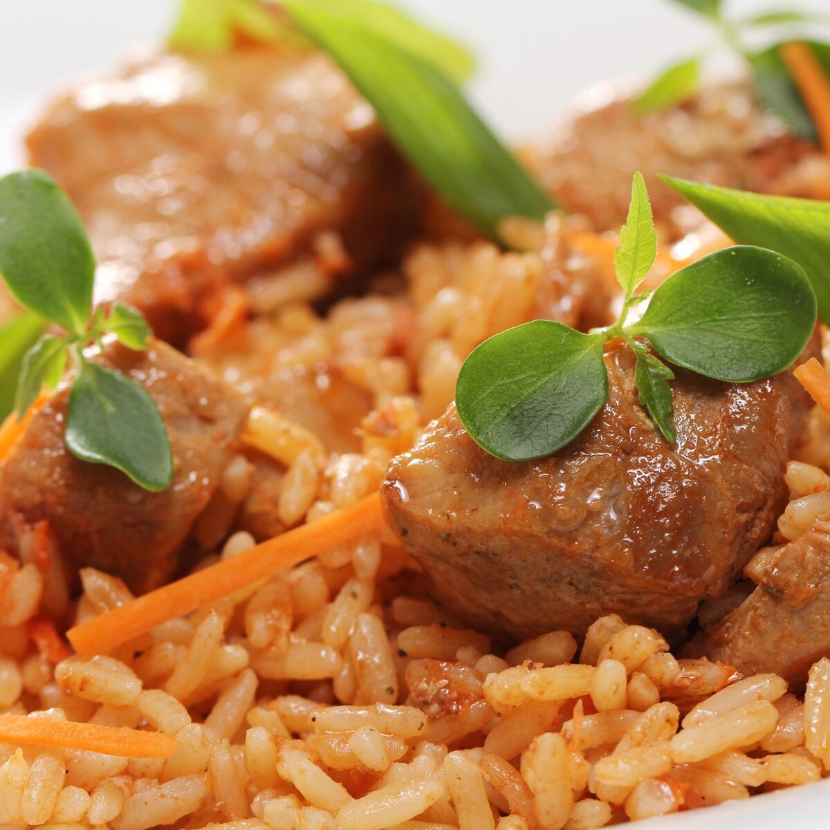 Масло подсолнечное – 300 мл Приготовление Мясо нарезаем на довольно крупные куски. Лук режем полукольцами, морковь – на брусочки.