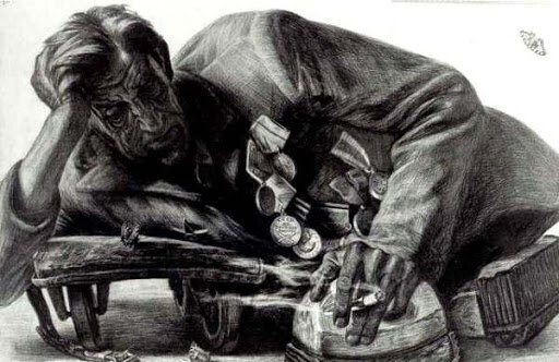 Мать молилась за сыночка: -Возвратись живым, родной, У тебя жена и дочка И отец совсем больной. Материнская молитва Сохранила жизнь бойца, Но была такая битва,- Не узнать его лица: Обгорели щёки, губы, Глаз виднеется едва, Стали плечи шрамом грубым, И пустые рукава... Не смогла жена героя С ним остаться... Молода... А с калекой хватишь горя, Лучше...раз- и навсегда. И ушла к другому жёнка,- Он простил и смог понять, И, как малого ребёнка, Снова "нянчит" его мать. И даёт ей сил Всевышний,- (Слава, слава тебе, Бог!) Сын для матери не лишний, Только ей отмерен срок. А беспомощный калека - Сразу в обществе изгой... Где б заботу человеку... Только, знать, в стране другой. А у нас в ту пору странный Свыше издан был приказ: Инвалидов - ветеранов Срочно...(Нет! Не на Кавказ!) Чтоб не портили картину Мирных улиц, площадей, Решено всех, до едина, Будто вовсе не людей, Поселить на дальний остров,- Валаам, встречай гостей... Решена задача проста Сверх заботою властей. Здесь, защитники - герои дож