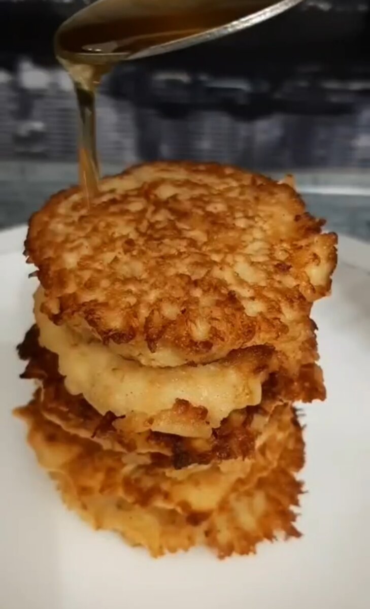 Понадобится: Овсяные хлопья-200мл Вода-200мл Яблоко-1шт Молоко-50мл Кукурузный крахмал-2ст л Сахар-1ч л Разрыхлитель-0,5ч л Щепотка соли Ванилин, корица по вкусу Готовим: В овсяные хлопья добавляем воды и оставляем набухаться. А пока натираем яблоко и добавляем к овсянке. Теперь добавляем остальные ингредиенты, перемешиваем всё хорошо. Выкладываем на разогретую сковороду и жарим до золотистого цвета. Приятного аппетита!