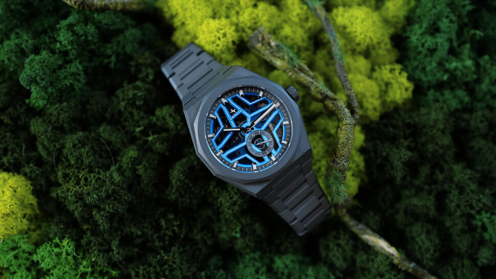 Новая модель часов Zenith x Time + Tide Defy Skyline Night Surfer El Primero Limited Edition 2023 стала второй совместной работой брендов Zenith и Time + Tide. После выпущенной в 2021 г. лимитированной серии Defy Classic Skeleton Night Surfer из 100 экземпляров с синим градиентным циферблатом в стиле ночного неба и океана в титановом корпусе с пескоструйной обработкой, Zenith и Time + Tide представляют новую лимитированную серию Defy Skyline Skeleton Night Surfer El Primero из 200 экземпляров по цене $12000.