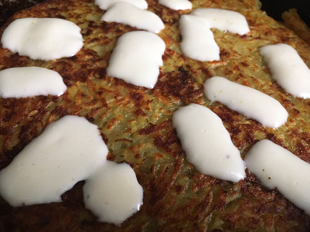 Отыскал в своём архиве давнишние фотографии, как я ездил в гости к своему отцу, и мы вместе готовили картофельную бабку с переворотом. Я так не умею, только он, поэтому решил показать в связи с начатым ранее разговором про драники. Это довольно интересно и вкусно. В целом, бабка - блюдо максимально простое, потому что белорусское. натираем на крупной терке картофель, отжимаем по необходимости жидкость, добавляем яйцо, соли, выкладываем один слой, внутрь можно какую-то начинку. Например, обжаренные с луком шампиньоны. А можно и мясо, буде оно у вас имеется. Сверху помещаем второй слой и разравниваем. Начинаем неспешно обжаривать на среднем огне, чтобы внутри все тоже приготовилось. Можно использовать крышку. Когда снизу бабка зазолотилась, вооружаемся тарелкой с елочками. Тарелку кладем на бабку в сковороде. И переворачиваем бабку на тарелку. Затем возвращаем на сковороду необжаренной стороной. Вот какая красота. Тут нужна практика, с первого раза может и не получиться. И, разумеется,