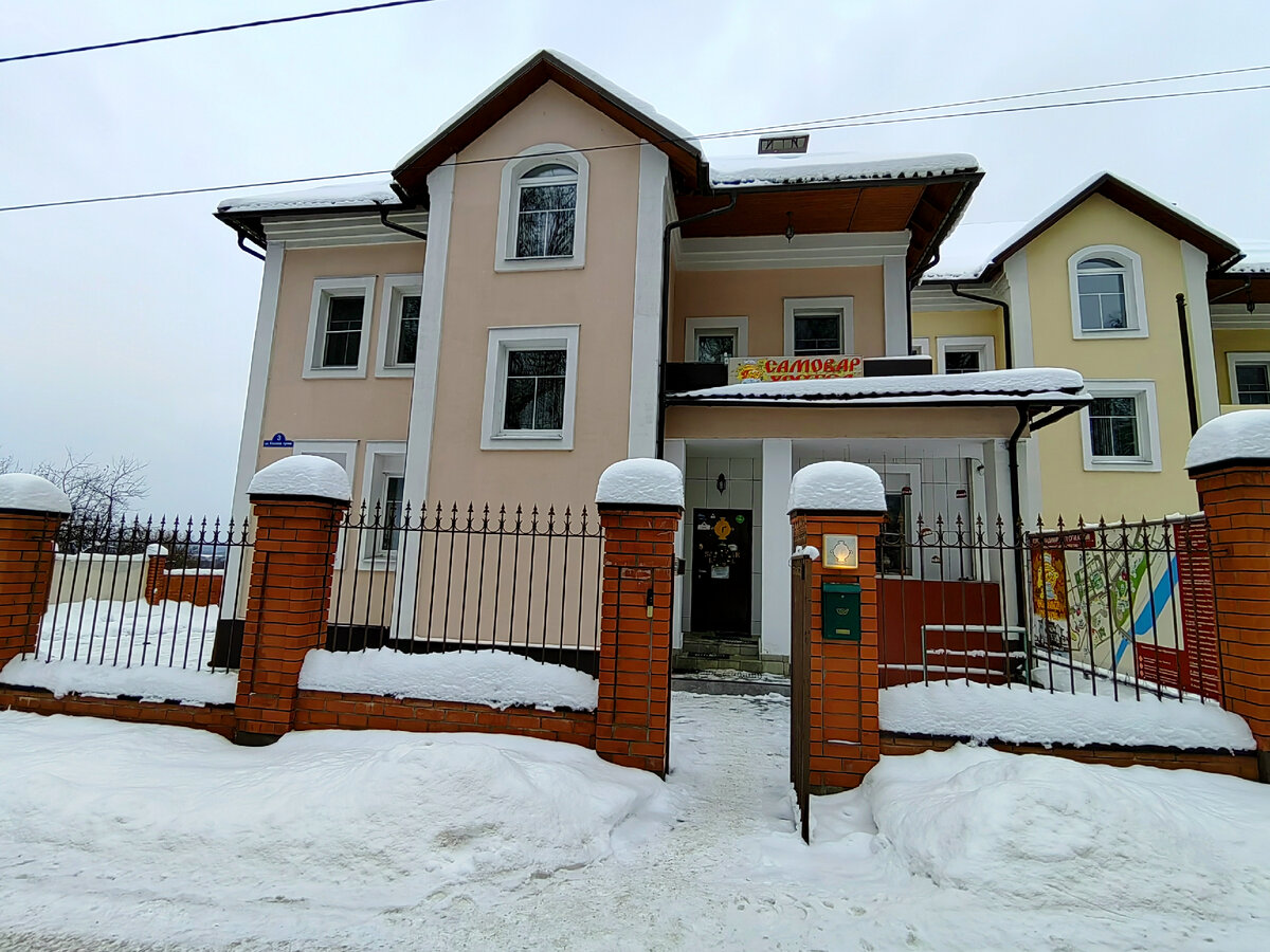 Кухня — на первом этаже. Есть холодильник, плита, микроволновка. Посуды также для готовки достаточно.