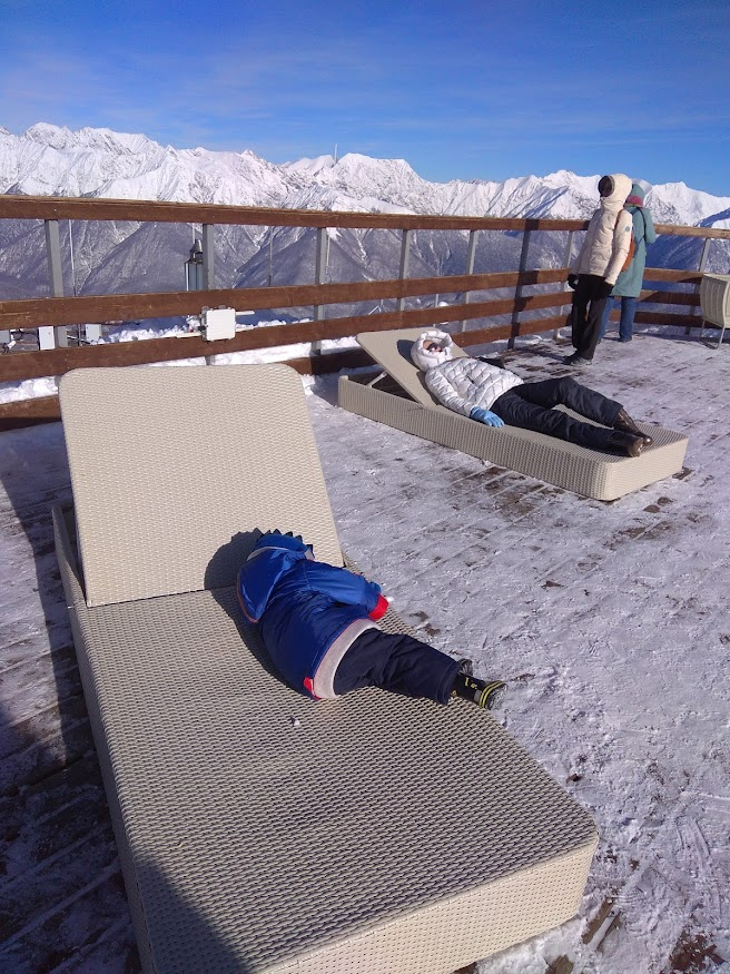 Наш план в Сочи был примерно такой: первые три дня проводим в горах, потом спускаемся к морю и отдыхаем там. В горах муж с братом планировали покататься на лыжах, в эти дни как раз должен был начаться сезон. Поэтому мы забронировали квартиру на Красной поляне на три дня на пятерых, а потом забронировали отель Сочи Парк в Адлере на троих.