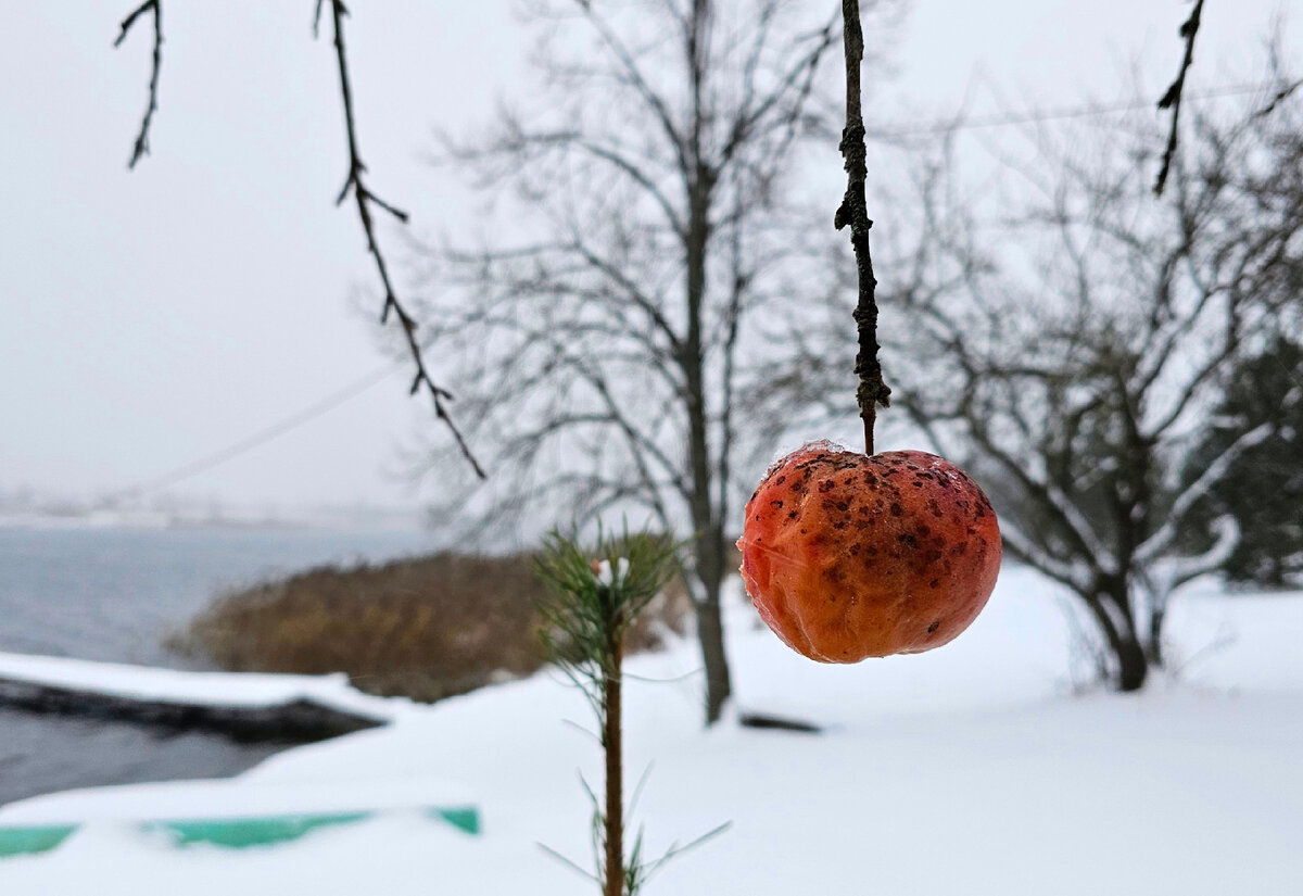 Последнее яблочко в нашем саду! Весь урожай снят. Летние сорта переработаны, что в компоты, что в варенье, что отправлено на сушку. Зимние, которых в этом году не так много, заложены в ящики. А это осталось! Просмотрели! Просмотрели и мы, и птицы! Птицы, впрочем, как и осы, очень сильно помогают собирать урожай! В этом году было много ос. Просто какое-то наваждение. От ос страдали не только плоды, но и дети, и взрослые. На улице невозможно было съесть, что-нибудь сладкое или мясное. Сядешь в беседку попить чая, а они тут как тут, и прямо роем. Осы выедали яблоки и груши внутри, оставляя одну кожуру. Ели они яблоки, как на дереве, так и на земле. Сорвешь яблоко, а из него, как из домика, одна, вторая, третья, четвёртая.... целое общежитие. И все недовольные, что их от еды отвлекли. Того и смотри ужалят. А оса, она как заправский лучник, если разозлилась, только и достаёт стрелы с колчана, и жалит, жалит, жалит. Спасает только бегство. Детей помногу раз за лето ужалили. Да и меня раз