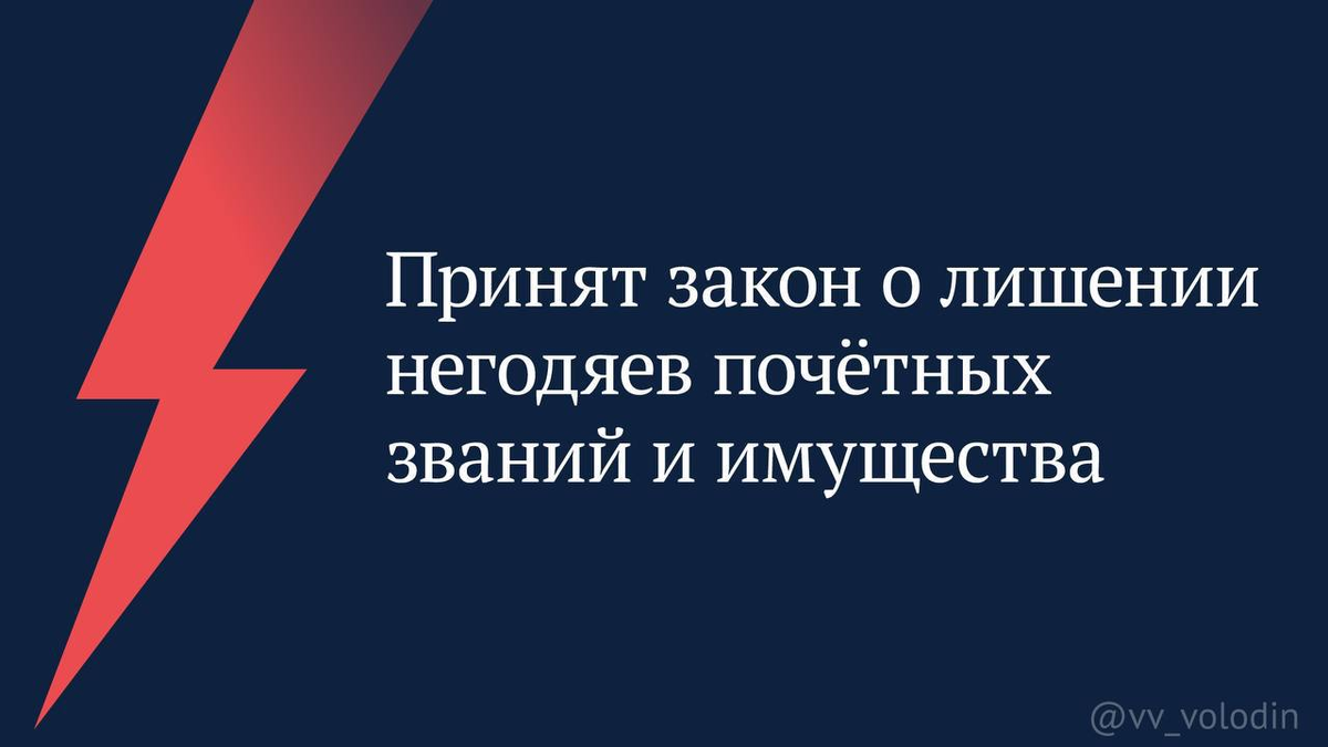 Принятое решение позволит наказывать тех, кто ведёт деятельность против своей страны, — лишать этих негодяев почётных званий, а также конфисковывать их имущество, деньги и иные ценности.