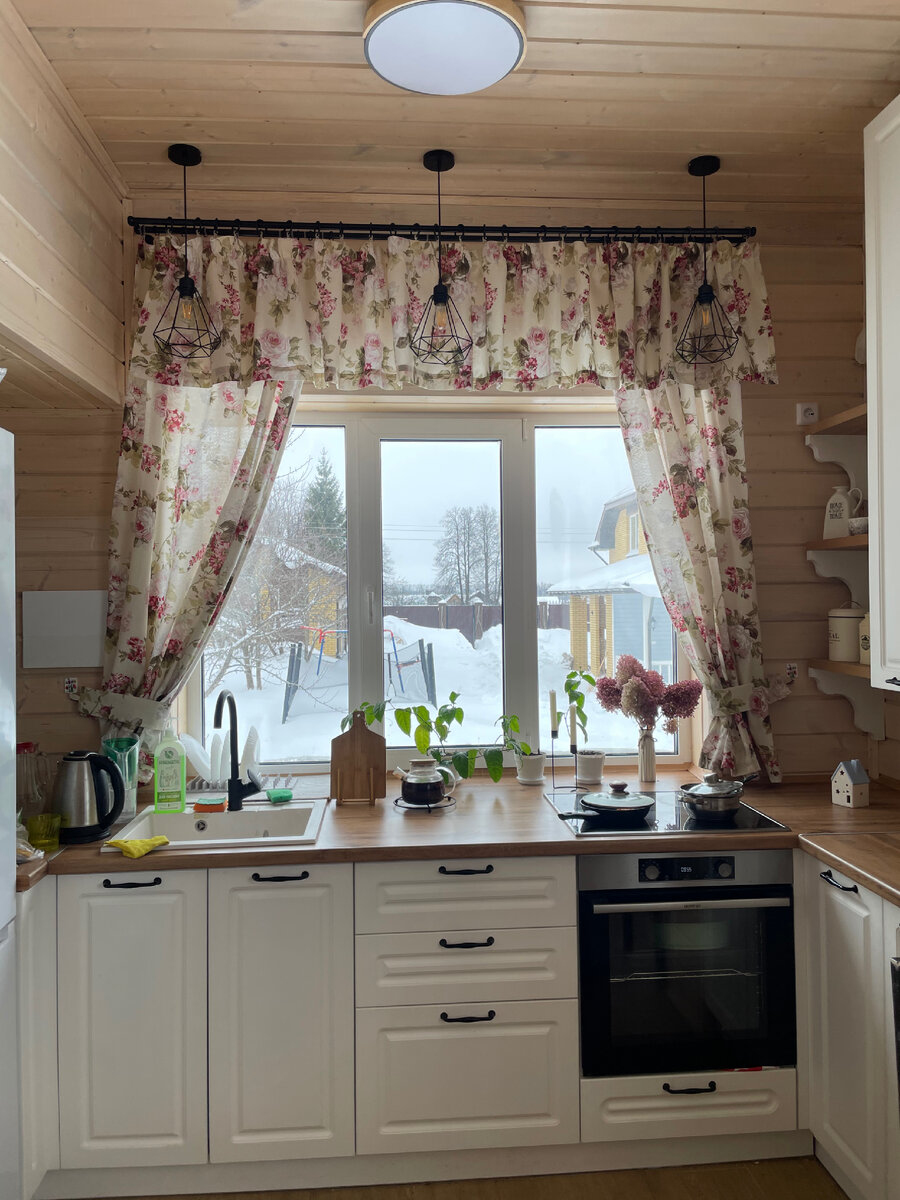 Все уже видели мою красивую кухню с мойкой у окна. Я выкладывала фотографии видов из окна и другие детали, но полностью домик изнутри ещё не показывала и почти ничего о нём не рассказывала. Многие интересуются, что за домик? Почему на участке два дома? Вообще-то этот маленький домик муж планировал под баню. Но когда я осталась одна, поняла, что, во-первых, отделку большого дома я не вытяну. Во-вторых, когда я заходила в маленький домик и смотрела на шикарный вид из окна, я думала: «Какая баня? Я здесь жить хочу». В-третьих, зачем мне на данный момент большой дом без мужа? Вот вернётся он и всё сам доделает. А мне пока и маленького достаточно. Размер домика 35 кв. метров - стандартная однокомнатная квартира. Прекрасно подходит для дачного домика, в котором при желании я могу разместиться со всеми четырьмя детьми. И я приняла решение начать отделку. И даже нашла проект у мужа. Планировка домика, конечно, меня удивила. Муж собирался делать электрическую баню. При том, что я признаю бани