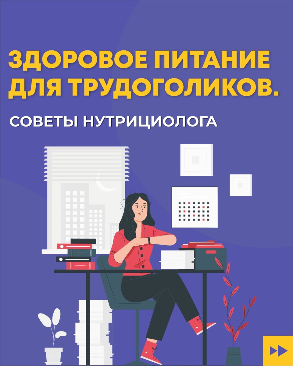 «Я работаю в офисе, мне некогда нормально поесть», «Я врач, времени на еду вообще нет», «Работаю посменно, очень сложно организовать свой рацион в таком режиме». Конечно, напряженный график и загруженность могут затруднить построение сбалансированного рациона. Большие перерывы между приемами пищи, отсутствие сбалансированных блюд в общепите и доставках, кусочничество во время работы - могут привести к набору лишних килограммов. Что делать? Советы нутрициолога для трудоголиков: ВАЖНО: ◦ не работать во время приема пищи; ◦ не пропускать приемы пищи и не терпеть голод. Работа во время еды нарушает формирование сытости. Дайте своему мозгу сфокусироваться на приеме пищи, не отвлекая его внимание на работу, соцсети и тд. Пропуск приемов пищи обернется повышенным аппетитом в дальнейшем, и, как следствие, к перееданию. ГЛАВНОЕ: Задумываться о еде, планировать свои приемы пищи, уделять время организации своего рациона. Это нормальный навык человека, который заботиться о своем комфорте и здоров