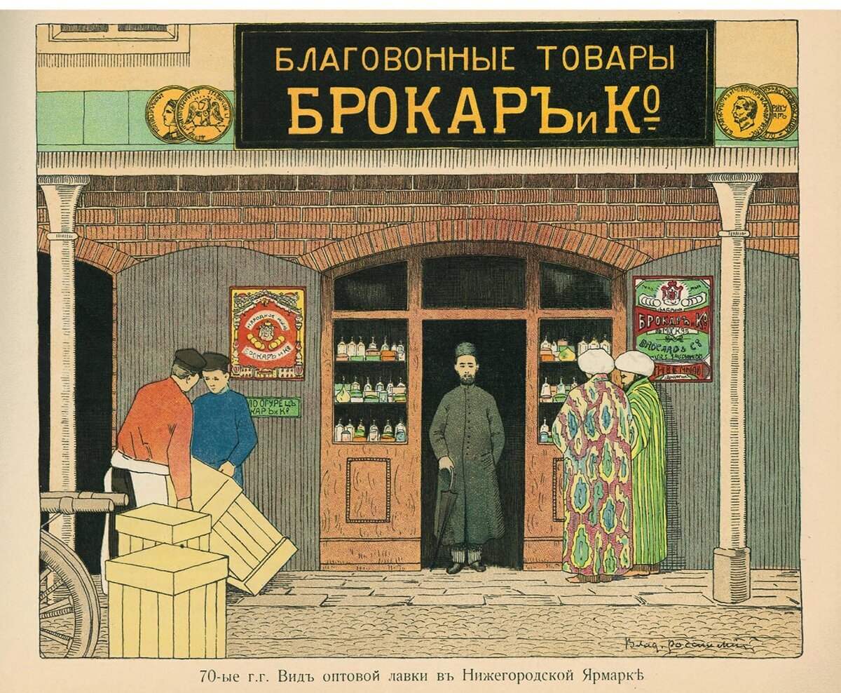На рубеже XIX-XX веков в пассаже Главного ярмарочного дома можно было купить коллекционные яйца Фаберже, фарфоровых кукол и изысканную парфюмерию. Доступные по цене мыло, духи и одеколоны поставлял, в том числе, и Генрих Афанасьевич Брокар. До середины XIX века даже в вопросах гигиены было заметно социальное неравенство. Элита покупала парфюмированное мыло, а крестьяне использовали разведенный щелок и яичный раствор. Анри Брокар, сын парижского парфюмера Атанаса Брокара, в 1861 году переехал в Москву. Здесь изобретателя концентрированных духов нарекли Генрихом Афанасьевичем. Два года он знакомился с таким непривычным для него бытом русских людей, а в 1864 году открыл мыловаренный завод в Москве. Он начал выпускать доступную даже для бедных продукцию. Особой популярностью пользовалось детское мыло с оттисками букв русского алфавита: оно было и игрушкой, и азбукой, и сувениром. А еще Брокар первым в России начал выпускать мыло разных форм: «Огурец», «Мандарины» и другие, а бруски было с