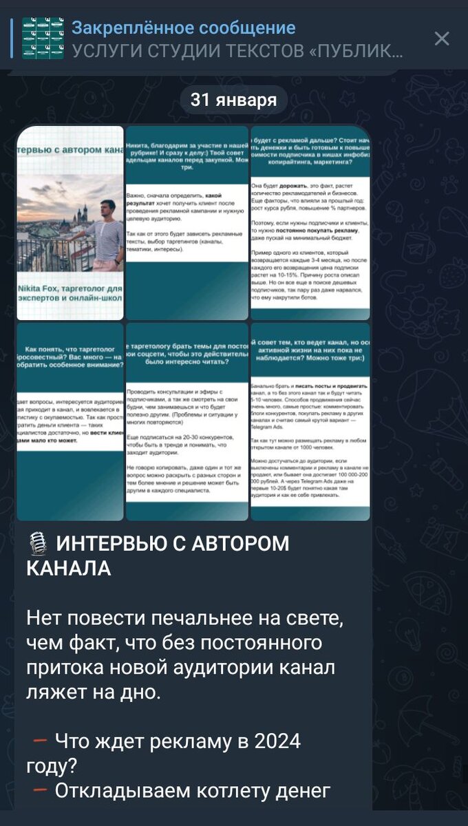 Расскажу о том, что использую я, чтобы меня замечали даже ТОПы рынка и шли в работу 😁 Привет! Я Лия, эксперт по бесплатному трафику в тг, копирайтер и автор телеграм канала "Лия, продвинь телегу". За два месяца мой блог вырос с 80 до 758 подписчиков. И теперь я иду в медийность, параллельно преследуя 5 тысяч подписчиков за этот год 👌 Рассказываю, что я делаю, чтобы меня заметили и откуда собираюсь гнать трафик, кроме комментинга Интервью и подкасты Необязательно ходить в студию и снимать там подкаст, параллельно отдавая 100К+ за участие какому-то чуваку. Можно... Кстати, для этого необязательно зарабатывать миллионы и иметь огромную аудиторию. Достаточно быстро наращивать живых подписчиков и активно мелькать в разных каналах (комментинг, сми, ютуб) Статьи на тематических платформах Писать статьи на дзене, vc, dtf или хабр (если вы программист, играете в игры или в принципе технарь). Так можно и заявки на продукты/услуги получать, и узнаваемость увеличивать. А самое главное — эт