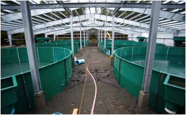 Для выращивания раков по интенсивному методу целесообразно строить раковые фермы из легких металлоконструкций (подробнее о технологии). Возвести их можно быстро, всего за два - три месяца, а по прочности и функциональности они будут сопоставимы с капитальными строениями. При этом они будут точно соответствовать санитарно-техническим требованиям. Быстровозводимая раковая ферма — это строение ангарного типа с металлокаркасом и обшивкой из сэндвич-панелей с высокими теплоизоляционными и шумоизоляционными характеристиками. Во внутренних помещениях по определенной схеме располагаются емкости с водой. Ракам требуется развитый донный рельеф и отвесные стенки, поэтому стандартные УЗВ для них не подходят. Требуются емкости разных размеров: 4х8 м для взрослых животных, и небольшие – для карантинных изоляторов и пересадки на время чистки. Площадь сооружения должна составлять не менее 300 кв. м, только так можно организовать рентабельное производство. Ширина транспортных проходов между резервуара