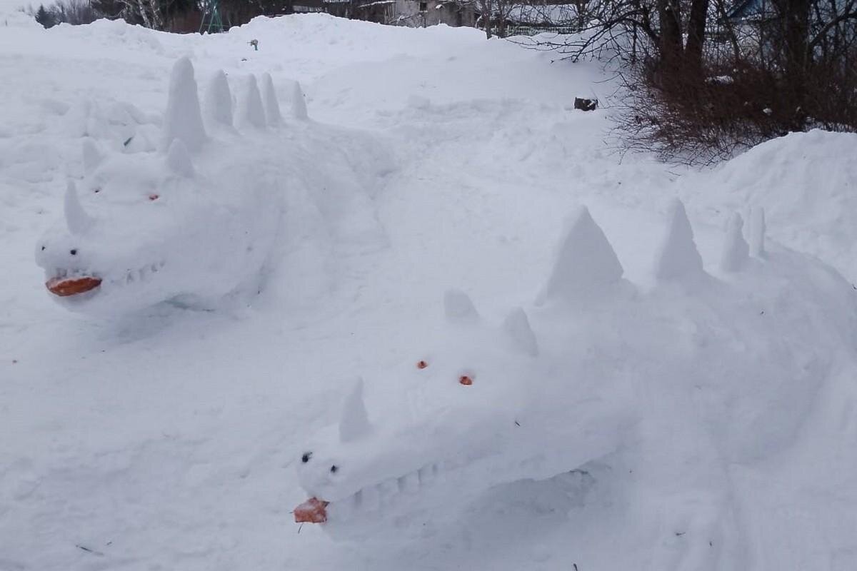 В Пронском районе местный житель слепил из снега двух драконов