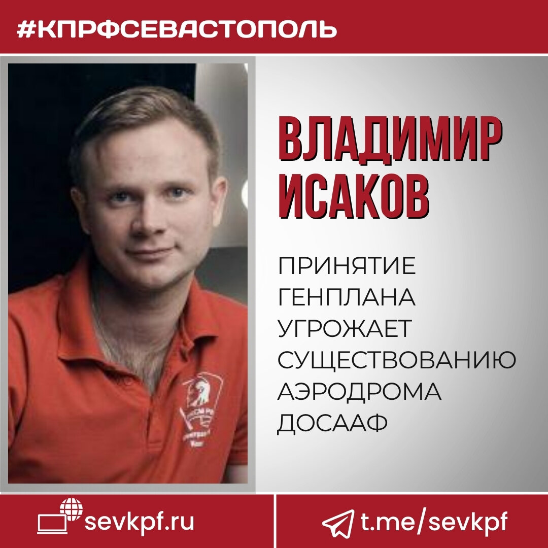 Депутат Государственной Думы, заместитель председателя комитета по молодёжной политике Владимир Исаков считает, что принятие генерального плана Севастополя ставит под угрозу сохранение аэродрома ДОСААФ в Юхариной балке.