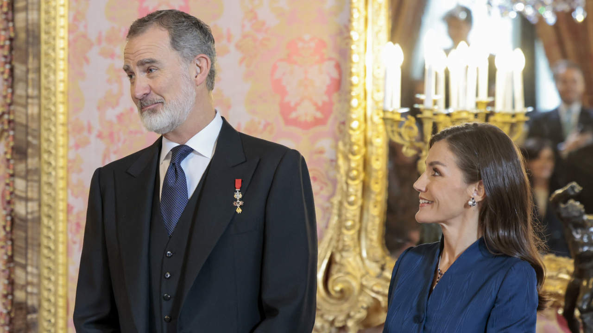 Король Филипп и королева Летиция председательствовали на традиционном приеме дипломатического корпуса в Королевском дворце, торжественном приеме, на котором королеве пришлось столкнуться с небольшой проблемой.