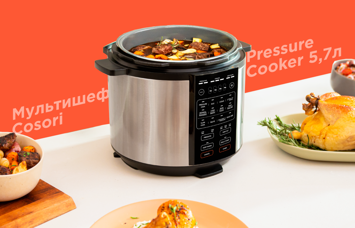 Компания Cosori производит аэрогрили и другие кухонные приборы, призванные помочь готовить быстро и вкусно здоровую пищу, без лишних забот и траты времени. Недавно Cosori выпустила свою новинку – мультишеф Pressure Cooker CMC-CO601 5,7 л. Этот гаджет обладает невероятными возможностями и никого не оставит к себе равнодушным. С мультишефом еду можно приготовить почти в три раза быстрее, при этом практически исключая полностью масло, из-за чего еда становится более здоровой. Большой набор программ приготовления поможет готовить без хлопот – под большинство привычных нам продуктов повседневного рациона есть своя программ приготовления. Есть набор программ приготовления с давлением и без давления. А как они работают и в чем их различия расскажем ниже.