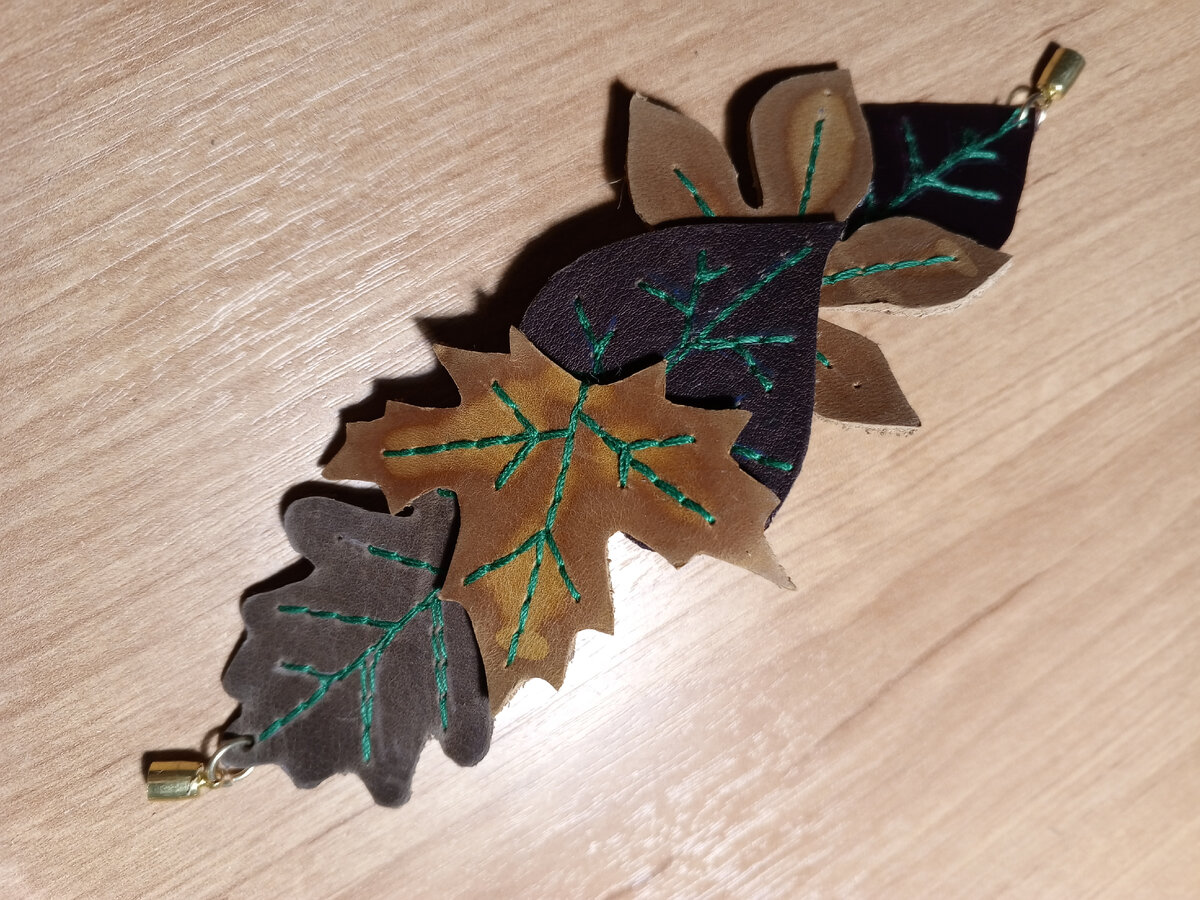 Одним из интересных материалов, который можно использовать при изготовлении различных украшений, является кожа. Кожа – прочный и гибкий материал, который не только устойчив к износу, но и имеет эстетическую привлекательность. Один из самых популярных способов использования кожи при изготовлении украшений – создание браслетов. Один из примеров творческого использования кожи для изготовления браслетов — это изготовление браслета из вырезанных листьев. Для этого вам понадобится небольшой кусок кожи, нитки и швейная машинка. Машинка у меня очень старая, зато без проблем строчит два слоя кожи. Сначала выберите форму будущих листов. Для этого можно использовала готовые шаблоны или можно самостоятельно нарисовать несколько вариантов. Затем листики переносим на кожу и вырезаем. Важно помнить, что кожа может быть достаточно плотной, поэтому для вырезания потребуется использовать острый нож или ножницы с хорошо заточенными лезвиями. После того, как все листики вырезаны, можно начинать прошивку.