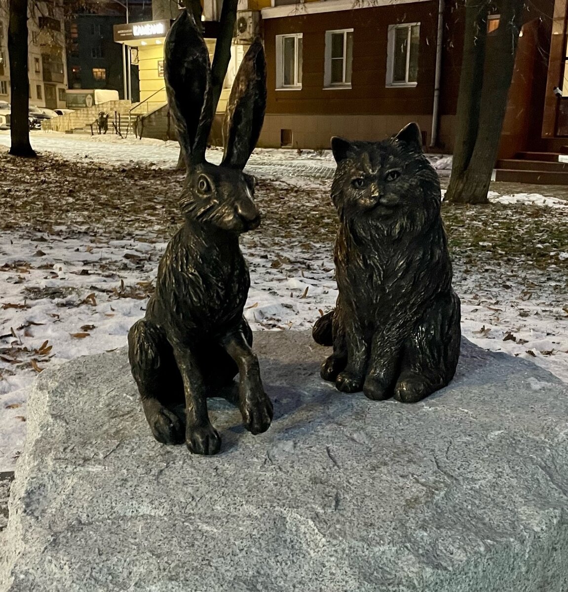 Бронзовые кот и заяц на улице Зегеля в Липецке установлены романтичным пенсионером ради любимой