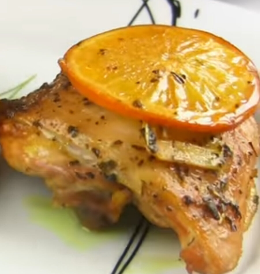 Куриные бедра с апельсинами в духовке.