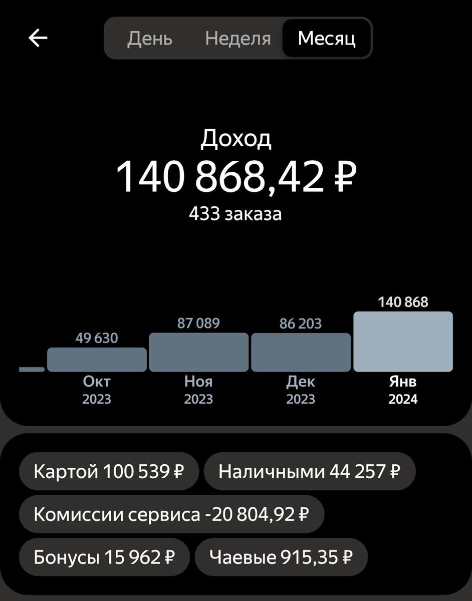 Неплохой результат для провинциального города. За 20 дней АКТИВНОЙ работы общий доход составил более 140 тысяч рублей. За вычетом налогов, бензина и расходов на обслуживание личного автомобиля на руки вышло порядка 100 000 А вот доход по неделям. Цели, назначаемые яндекс такси сильно мотивируют на выполнение заказов
