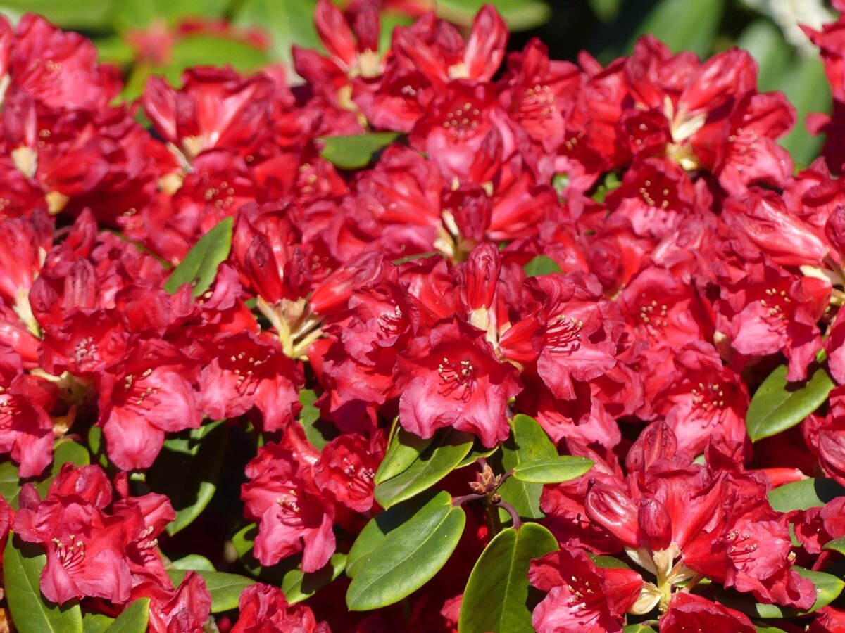 Рододендрон сорта hybrid Francesca отличается ярким обильным цветением и станет украшением любого участка. Об особенностях сорта и уходе за ним расскажем в статье. Описание сорта Рододендрон гибридный Франческа — это вечнозеленый куст шаровидной формы, который вырастает до 150–170 см в высоту и на столько же в диаметре. Главное достоинство сорта — цветки насыщенного темно-красного оттенка с волнистыми лепестками. В соцветии от 17 до 26 цветков, каждый по 5–10 см в диаметре. При этом аромата они не имеют. Цветение начинается в конце мая — начале июня и продолжается около 3 недель. При наличии полутени яркость лепестков сохраняется на весь период цветения. Рододендрон hybrid Francesca хорошо смотрится как в индивидуальной, так и в групповой посадке, кусты можно высаживать вдоль дорожек и ограждений. Морозостойкость Сорт выдерживает температуры до –30 градусов, но при суровых зимах нуждается в укрытиях. Молодые саженцы лучше укрывать мешковиной, а для утепления взрослых растений подойдут