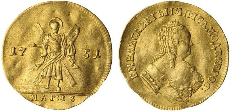 ЗОЛОТЫЕ монеты Российской Империи (1741 - 1761) / Елизавета Петровна / Андреевские червонцы