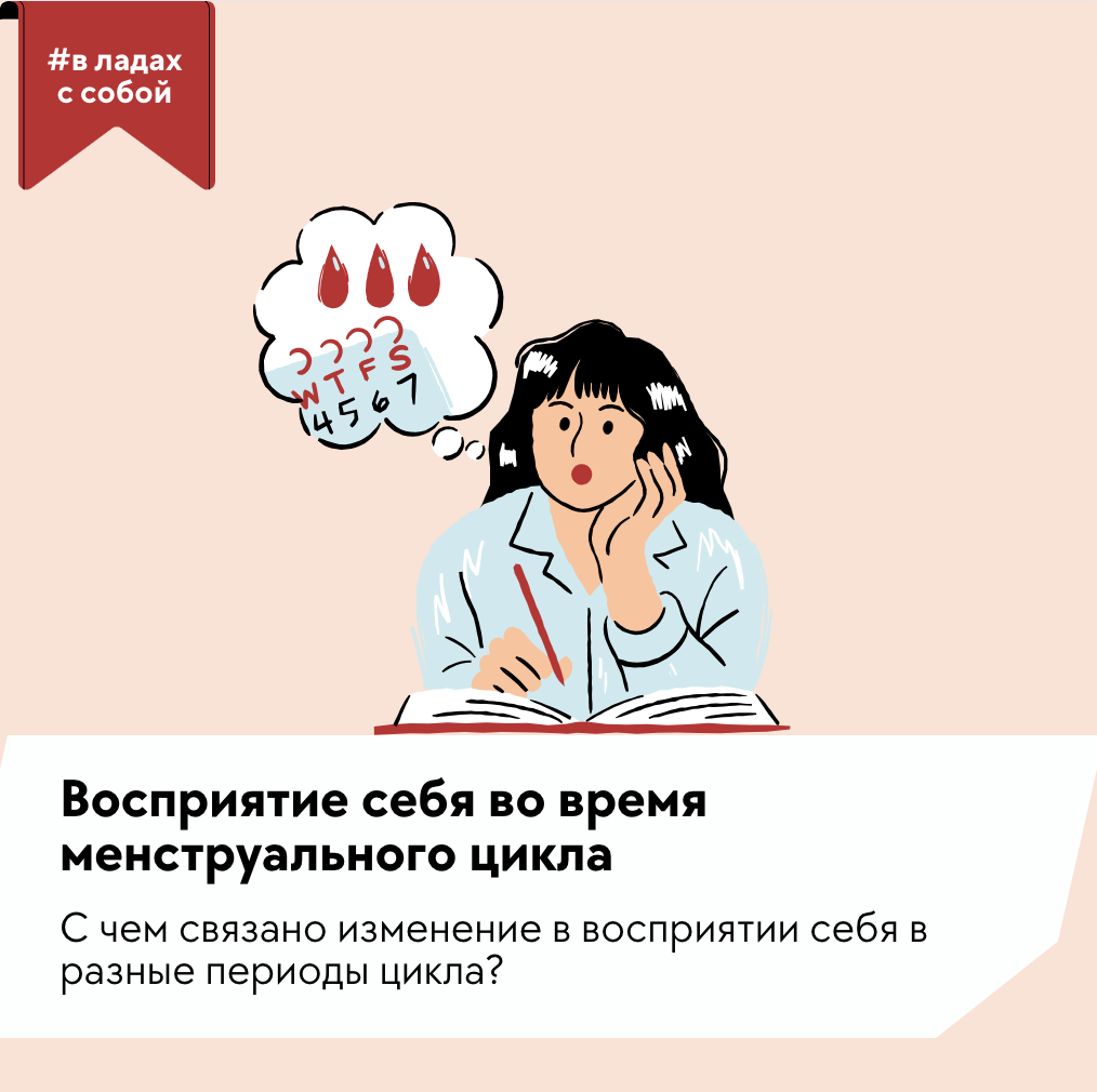 Стереотип о том, что женщины раздражительные во время месячных, стар как мир, хотя в нем есть доля правды. Но изменения в поведении и ощущениях женщин есть и в другие периоды цикла. Причиной изменения поведения и отношения к себе ученые считают гормоны. Во время кровотечения яичники выбрасывают в кровь большое количество прогестерон и эстрогена, которые неготивно влияют на тело и настроение, вызывая отеки и болевые ощущения, сонливость и депрессивное состояние. В этот период чаще всего женщины чувствуют себя непривлекательными, грустными и уставшими. Помимо физического дискомфорта в этот период на женщин давит социум. Во многих культурах и религиях женщина считается “грязной” во время кровотечения и не может участвовать в некоторых ритуалах. Также женщинам с кровотечением запрещено посещение некоторых мест, таких как бассейн и аквапарк, а любые яркие проявления эмоций в эти дни будут презрительно списаны на ПМС. Общество и тело “играют” против женщины. И как тут чувствовать свою прив